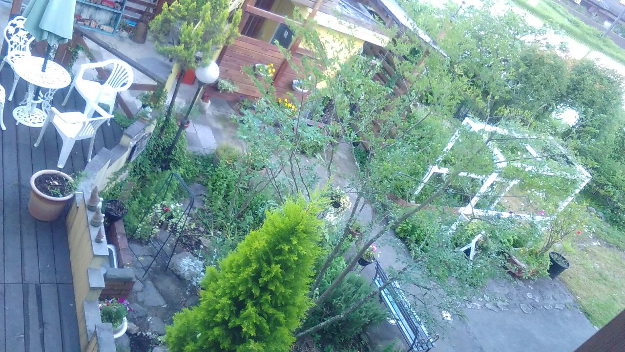 梅雨入りしました。 今日は梅雨入りして雨が降っています。 昼から天気が回復しました。 陽君が加古川で植木屋さんの下請けの仕事をさせていただいたときに木の剪定を学びさっそくガーデンの木を選定してくれスッキリしました。 年中オープンガーデンやっています(^^)/