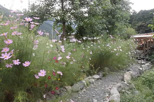 キッチンながれ星のガーデンでは色とりどりのコスモスが見頃です(^^)